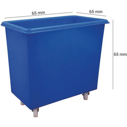 | Varenavn | Mobil beholder til tung last – lengde 850 mm – 200 I, Volum: 200 L, Totalhøyde: 785 mm, Totalbredde: 495 mm |