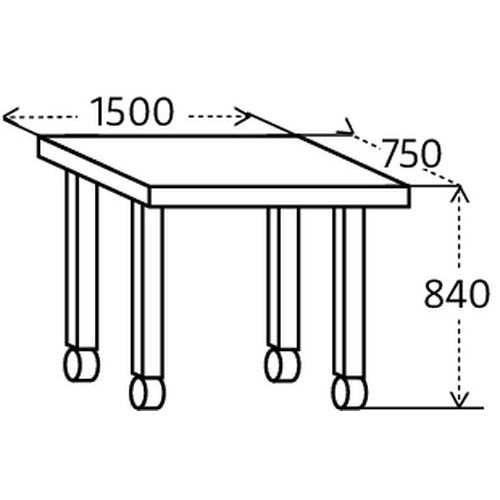 Arbeidsbenken er utstyrt med 4 svingbare gummihjul (2 med brems).