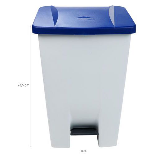 Mobil søppelbøtte som er lett å styre med sine 2 glatte hjul og transporthåndtak. Bred pedal på forsiden for enkel åpning. Ergonomisk for enkel flytting. Fargede lokk for sortering. Enkel å rengjøre.
