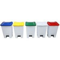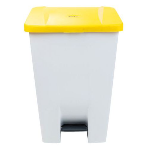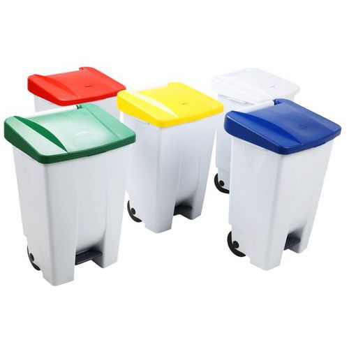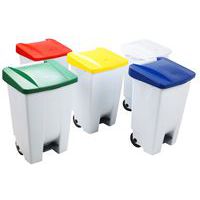 Mobil søppelbøtte som er lett å styre med sine 2 glatte hjul og transporthåndtak. Bred pedal på forsiden for enkel åpning. Ergonomisk for enkel flytting. Fargede lokk for sortering. Enkel å rengjøre.