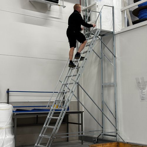 - Denne mobile trappestigen gir rask og trygg tilgang til en forhøyet arbeidsflate.