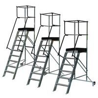 - Mobil trapp med sikkerhetsbur som fungerer som en trygg og flyttbar arbeidsplattform for innendørs arbeid i industri- og lagerområder.
