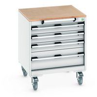 Skuffer med sikkerhetslås, lastekapasitet 50 kg. Modeller med en høyde på 785 mm kan oppbevares under en bott cubio arbeidsbenk for å bli et mobilt skap. 4 hjul - 2 faste, 2 svingbare med brems. Produsert i Storbritannia Maksimal last (kg) : 300