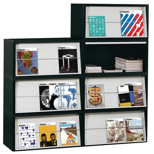 | Varenavn | Multibloc brosjyrestativ, Antall rom/søyler: 1, Farge: Svart, For format: 210 x 297 mm (A4), Høyde: 43.7 cm |
