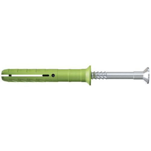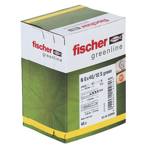 | Varenavn | N Grønn bankeplugg 6 40 10 S, Plugglengde: 40 mm, Ø: 6 mm, Materiale: Nylon, Type støtte: Tre |