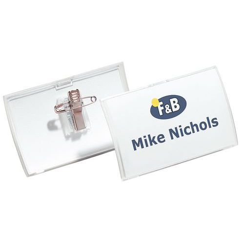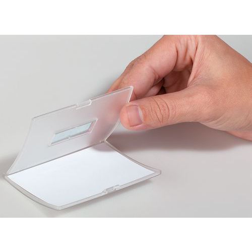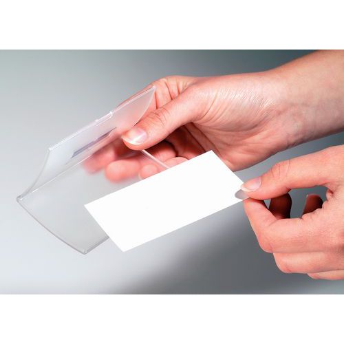 | Varenavn | Navneskilt Click Fold kombi 40 x 75 mm 25 stk., Farge: Transparent, Type festing: Tang, Lengde: 75 mm |