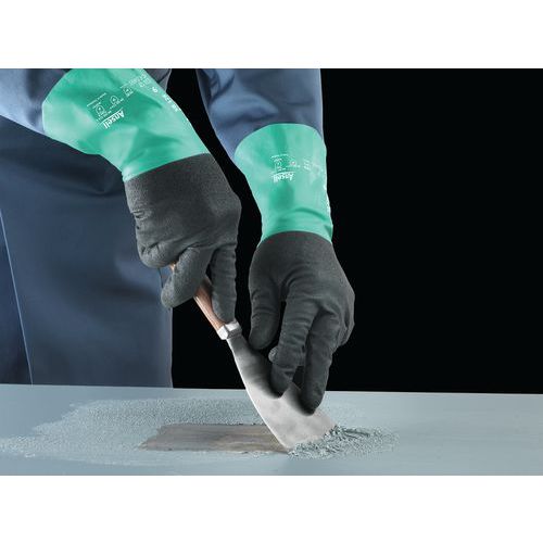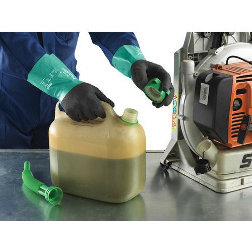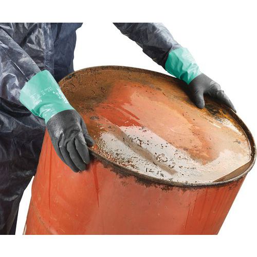 - Kjemiske vernehansker i nitril garanterer bedre beskyttelse av hånden mot væsker som irriterer ved kontakt.