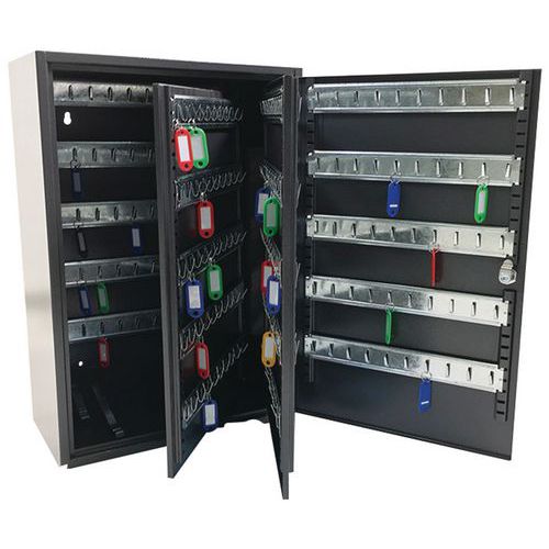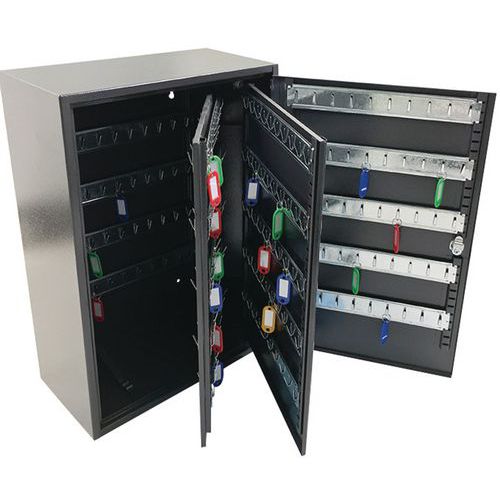 - Nøkkelskap med kroker for oppbevaring av 100 til 300 nøkler avhengig av modell.