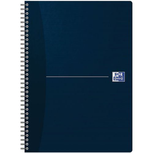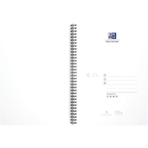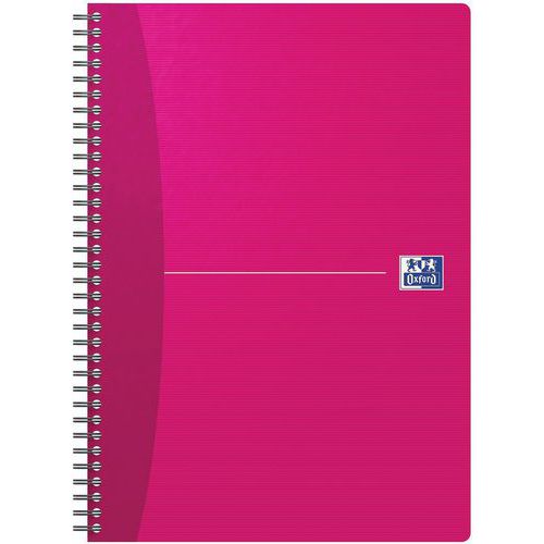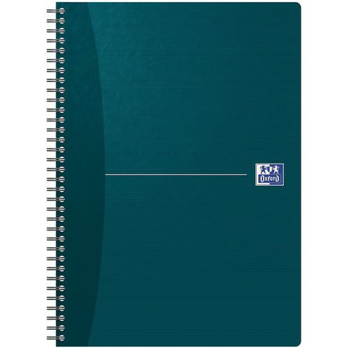 Oxford Office Essentials A4 notisbok med små ruter. 5 mm 180 sider, dobbelt spiralinnbundet, Kraft-omslag. Assorterte farger. A4-format ‐ Bredde: 21 cm x Høyde: 29,7 cm. Små ruter (5 mm) med topptekst og dobbelt marg. Mykt, ugjennomskinnelig belagt kortdeksel. Svart dobbelt spiralinnbinding. Dekselfarge: Blå, Grønn, Lilla, Lyseblå, 180 sider ‐ Kvalitetspapir Optik, 90 g ekstra hvitt glatt. Avtakbar sidemarkørlinjal følger med notatboken. Leveres med et frontomslag med egen skrivedel. Notatbok med EUs miljømerkesertifisering