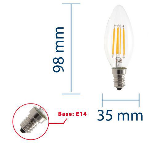 Oliven C35 4-W E14 sokkel LED-filamentpære, Lysfluks: 470 lm, Sokkeltype: E14