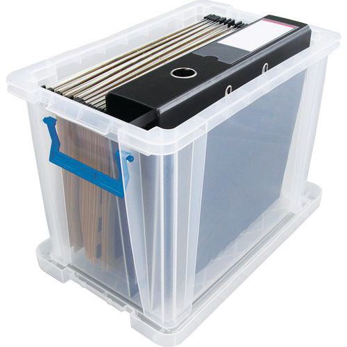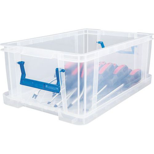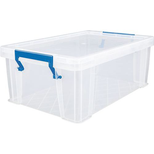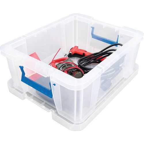 Oppbevaringsbeholder og lokk - robust og slitesterk beholder for all slags oppbevaring. Håndtakene gjør den enkel og praktisk å transportere. Beholderen er gjennomsiktig, noe som gjør det lettere å se og finne tingene i den.