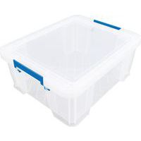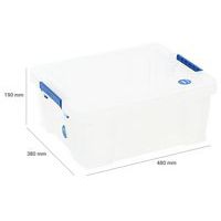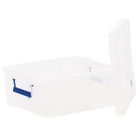 Oppbevaringsbeholder og lokk - robust og slitesterk beholder for all slags oppbevaring. Håndtakene gjør den enkel og praktisk å transportere. Beholderen er gjennomsiktig, noe som gjør det lettere å se og finne tingene i den. Produsert i Storbritannia NSF-sertifisert Maksimal last (kg) : 200 kg