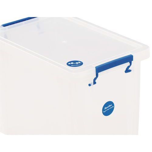 Oppbevaringsbeholder og lokk - robust og slitesterk beholder for all slags oppbevaring. Håndtakene gjør den enkel og praktisk å transportere. Beholderen er gjennomsiktig, noe som gjør det lettere å se og finne tingene i den. Produsert i Storbritannia NSF-sertifisert Maksimal last (kg) : 200 kg
