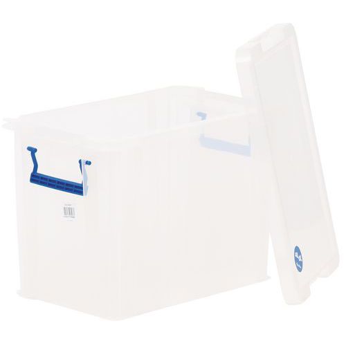 Oppbevaringsbeholder og lokk - robust og slitesterk beholder for all slags oppbevaring. Håndtakene gjør den enkel og praktisk å transportere. Beholderen er gjennomsiktig, noe som gjør det lettere å se og finne tingene i den.