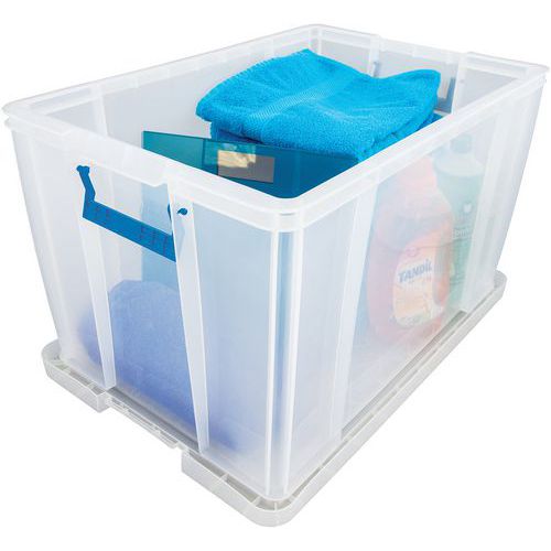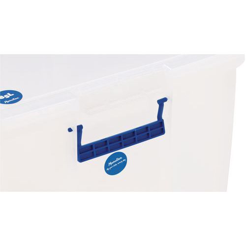 Oppbevaringsbeholder og lokk - robust og slitesterk beholder for all slags oppbevaring. Håndtakene gjør den enkel og praktisk å transportere. Beholderen er gjennomsiktig, noe som gjør det lettere å se og finne tingene i den.