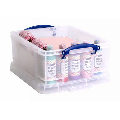 Kasse av polypropen som kan stables, med lokk og bærehåndtak. Helforsterket slik at den bedre tåler belastning og ikke blir ødelagt ved stabling. Kan stables med eller uten lokk og med kasser av samme størrelse. Konstant beskyttelse mot støv og fuktighet. Store håndtak som gjør transporten enklere. Produsert i Storbritannia Maksimal last (kg) : 80 kg Garanti (år) : 3 år