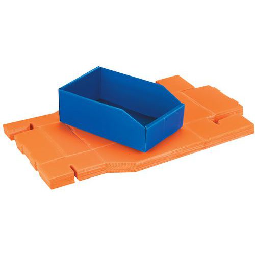 Foldbare bokser av polypropen som tåler vann, fett og kjemikalier.