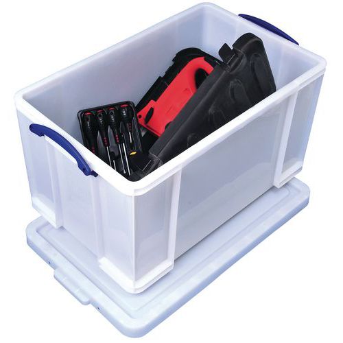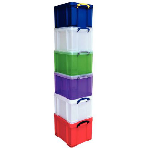Ugjennomsiktig materiale som beskytter innholdet mot innsyn. Helforsterket slik at den bedre tåler belastning og ikke blir ødelagt ved stabling. Kan stables med eller uten lokk og med kasser av samme størrelse. Konstant beskyttelse mot støv og fuktighet. Store håndtak som gjør transporten enklere. Produsert i Storbritannia Maksimal last (kg) : 100 Garanti (år) : 3 år