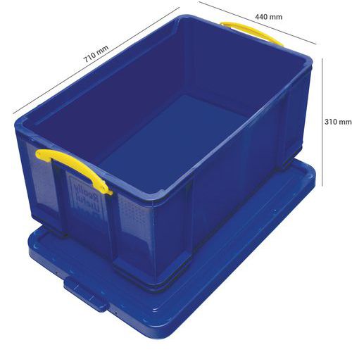 Ugjennomsiktig materiale som beskytter innholdet mot innsyn. Helforsterket slik at den bedre tåler belastning og ikke blir ødelagt ved stabling. Kan stables med eller uten lokk og med kasser av samme størrelse. Konstant beskyttelse mot støv og fuktighet. Store håndtak som gjør transporten enklere. Produsert i Storbritannia Maksimal last (kg) : 100 kg Garanti (år) : 3 år
