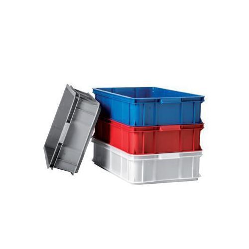 Næringsmiddelgodkjent oppbevaringskasse New York, produsert i slagfast HD-polyetylen – perfekt for transport, lager og oppbevaring. Motstandsdyktig mot de fleste syrer, oljer og alkaliske løsemidler. Kassen har solide håndtak på kortsidene og en flat bunn som egner seg for rullebaner. Svært stabil ved stabling. Modultilpasset standard Europall (EUR/EPAL).