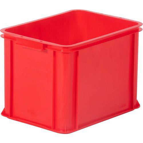 Næringsmiddelgodkjent oppbevaringskasse New York, produsert i slagfast HD-polyetylen – perfekt for transport, lager og oppbevaring. Motstandsdyktig mot de fleste syrer, oljer og alkaliske løsemidler. Kassen har solide håndtak på kortsidene og en flat bunn som egner seg for rullebaner. Svært stabil ved stabling. Modultilpasset standard Europall (EUR/EPAL).