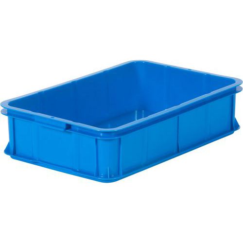 Næringsmiddelgodkjent oppbevaringskasse New York, produsert i slagfast HD-polyetylen – perfekt for transport, lager og oppbevaring. Motstandsdyktig mot de fleste syrer, oljer og alkaliske løsemidler. Kassen har solide håndtak på kortsidene og en flat bunn som egner seg for rullebaner. Svært stabil ved stabling. Modultilpasset standard Europall (EUR/EPAL).