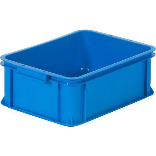Næringsmiddelgodkjent oppbevaringskasse New York, produsert i slagfast HD-polyetylen – perfekt for transport, lager og oppbevaring. Motstandsdyktig mot de fleste syrer, oljer og alkaliske løsemidler. Kassen har solide håndtak på kortsidene og en flat bunn som egner seg for rullebaner. Svært stabil ved stabling. Modultilpasset standard Europall (EUR/EPAL).
