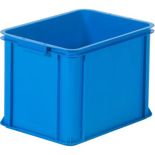 Næringsmiddelgodkjent oppbevaringskasse New York, produsert i slagfast HD-polyetylen – perfekt for transport, lager og oppbevaring. Motstandsdyktig mot de fleste syrer, oljer og alkaliske løsemidler. Kassen har solide håndtak på kortsidene og en flat bunn som egner seg for rullebaner. Svært stabil ved stabling. Modultilpasset standard Europall (EUR/EPAL).