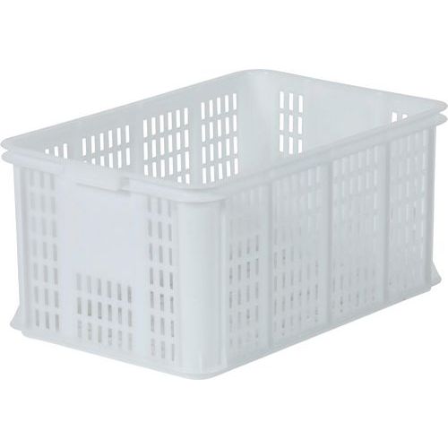 Næringsmiddelgodkjent oppbevaringskasse New York, produsert i slagfast HD-polyetylen – perfekt for transport, lager og oppbevaring. Motstandsdyktig mot de fleste syrer, oljer og alkaliske løsemidler. Kassen har solide håndtak på kortsidene og en flat bunn som egner seg for rullebaner. Svært stabil ved stabling. Modultilpasset standard Europall (EUR/EPAL).