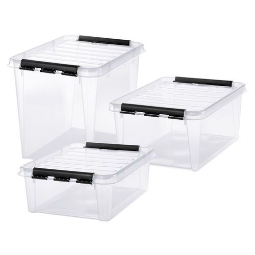 - Hver boks leveres komplett med lokk og robuste klips som holder lokket sikkert på plass.