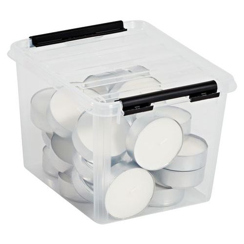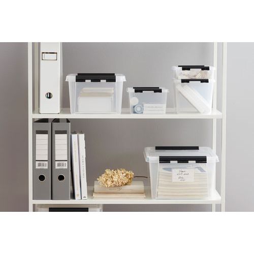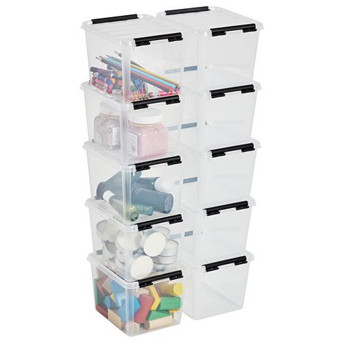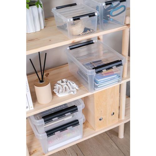 - Hver boks leveres komplett med lokk og robuste klips som holder lokket sikkert på plass.