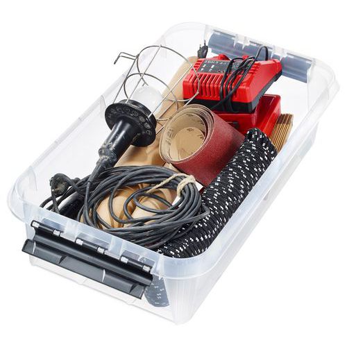 - Hver boks leveres komplett med lokk og robuste klips som holder lokket sikkert på plass.