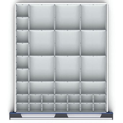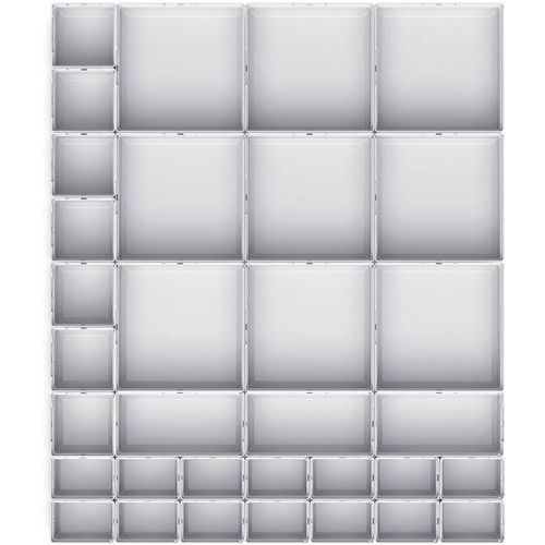 | Varenavn | Oppbevaringsbokser for Cubio EKK-67100 skuff, 33 rom – Bott, Bredde: 650 mm, Dybde: 750 mm, Høyde: 100 mm |