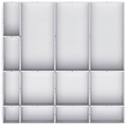 | Varenavn | Oppbevaringshyller for Cubio EKK-66100 skuff, 13 rom – Bott, Bredde: 650 mm, Dybde: 650 mm, Høyde: 100 mm |