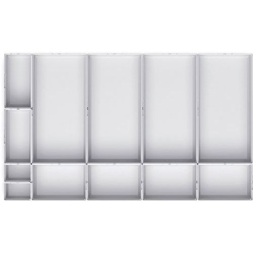 | Varenavn | Oppbevaringshyller for Cubio EKK-85100 skuff, 12 rom – Bott, Bredde: 800 mm, Dybde: 525 mm, Høyde: 100 mm |