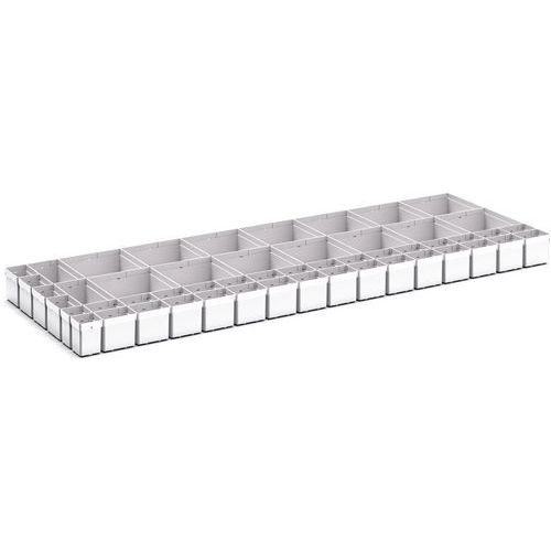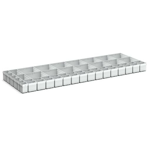 | Varenavn | Oppbevaringshyller for Cubio EKK35100 skuff, 52 rom – Bott, Bredde: 1300 mm, Dybde: 525 mm, Høyde: 100 mm |