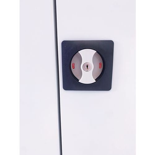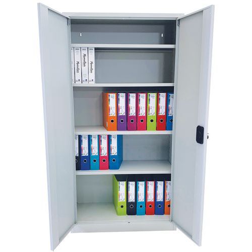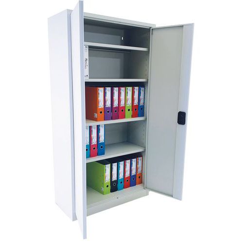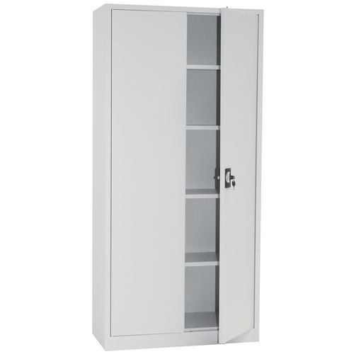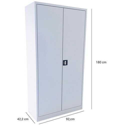 | Varenavn | Oppbevaringsskap i metall, høyde 180 cm, Totalhøyde: 180 cm, Totalbredde: 92.5 cm, Døråpningstype: Hengslet |