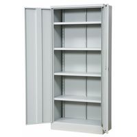 Robust oppbevaringsskap av høy kvalitet, perfekt for all slags oppbevaring i industri, kontor, lager og verksted. Laget av pulverlakkert metall for ekstra holdbarhet og lang levetid. Skapet leveres med fire flyttbare hyller som enkelt kan tilpasses etter behov. Utstyrt med espanjolettlås, dreiegrep og to nøkler for sikker oppbevaring. Den solide konstruksjonen gir stabilitet selv ved tung belastning, og hver hylle tåler opptil 70 kg. Et pålitelig valg for organisert og trygg oppbevaring av verktøy, materiell eller dokumenter.