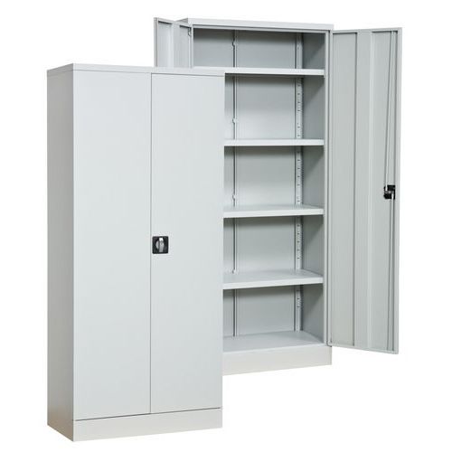 Robust oppbevaringsskap av høy kvalitet, perfekt for all slags oppbevaring i industri, kontor, lager og verksted. Laget av pulverlakkert metall for ekstra holdbarhet og lang levetid. Skapet leveres med fire flyttbare hyller som enkelt kan tilpasses etter behov. Utstyrt med espanjolettlås, dreiegrep og to nøkler for sikker oppbevaring. Den solide konstruksjonen gir stabilitet selv ved tung belastning, og hver hylle tåler opptil 70 kg. Et pålitelig valg for organisert og trygg oppbevaring av verktøy, materiell eller dokumenter. Maksimal last (kg) : 280 kg Maksimal vekt per hylleplan (kg) : 70 kg