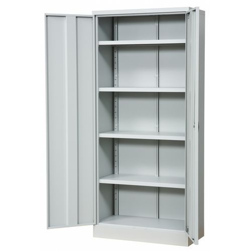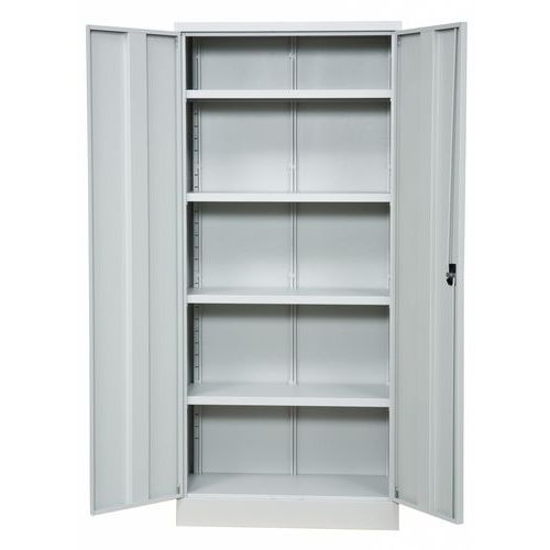 Robust oppbevaringsskap av høy kvalitet, perfekt for all slags oppbevaring i industri, kontor, lager og verksted. Laget av pulverlakkert metall for ekstra holdbarhet og lang levetid. Skapet leveres med fire flyttbare hyller som enkelt kan tilpasses etter behov. Utstyrt med espanjolettlås, dreiegrep og to nøkler for sikker oppbevaring. Den solide konstruksjonen gir stabilitet selv ved tung belastning, og hver hylle tåler opptil 70 kg. Et pålitelig valg for organisert og trygg oppbevaring av verktøy, materiell eller dokumenter. Maksimal vekt per hylleplan (kg) : 70 kg Maksimal last (kg) : 280 kg