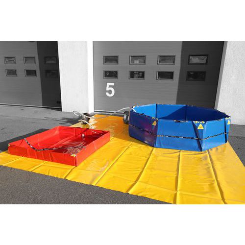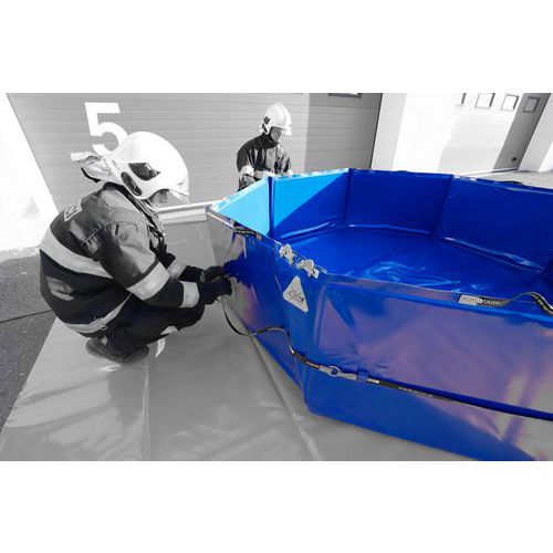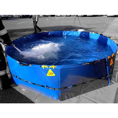 - Den sammenleggbare oppsamlingstanken brukes som vannreservoar eller til oppsamling av farlige væsker ved utslipp eller ulykker.