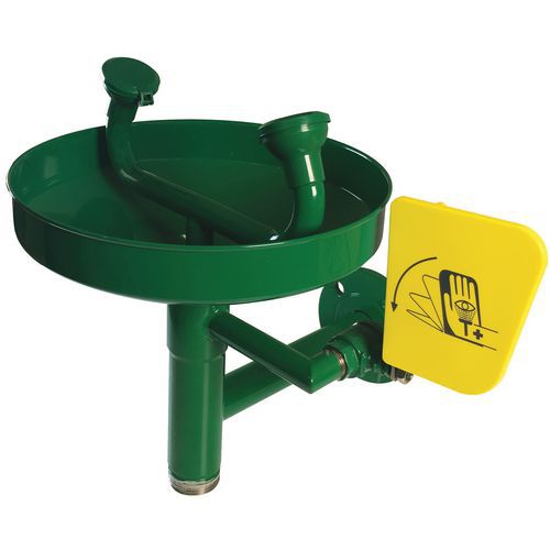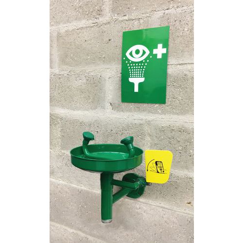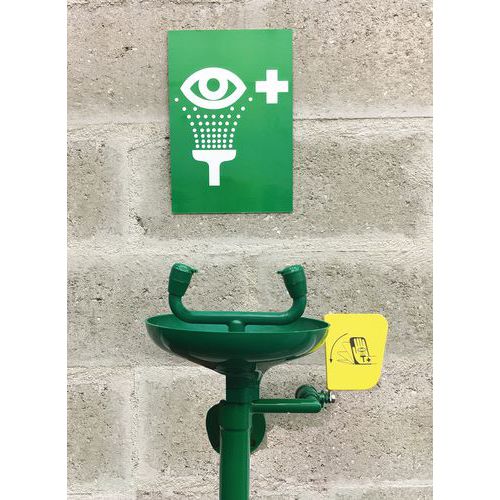 - Øyedusjens funksjon styres av en tydelig merket trykkplate.