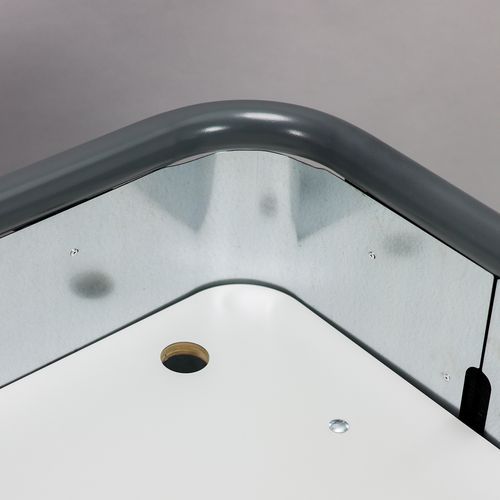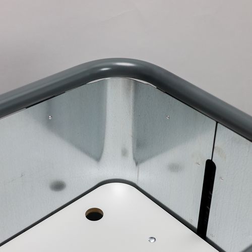 - Omslutningen rundt hyllen er laget av galvanisert plate.