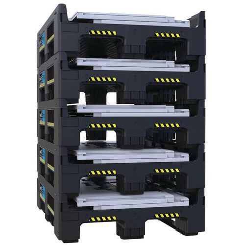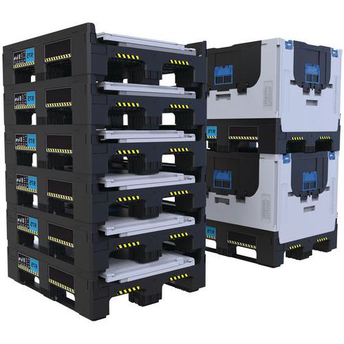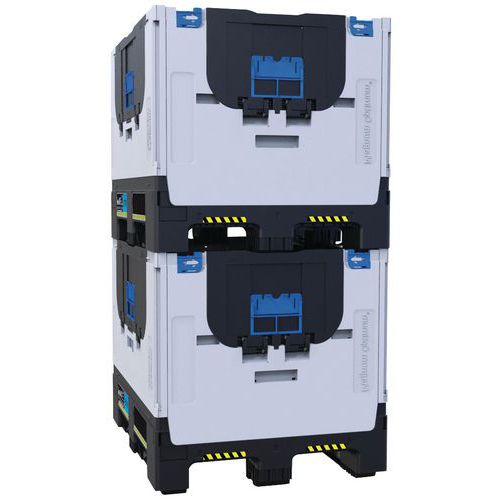 | Varenavn | Pallecontainer Magnum foldbar, Volum: 847 L, Maksimal last: 750 kg, Totalhøyde: 975 mm, Totalbredde: 1000 mm |
