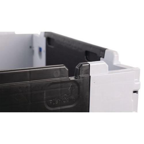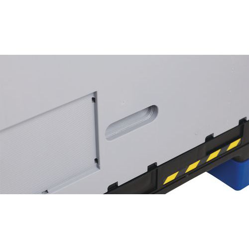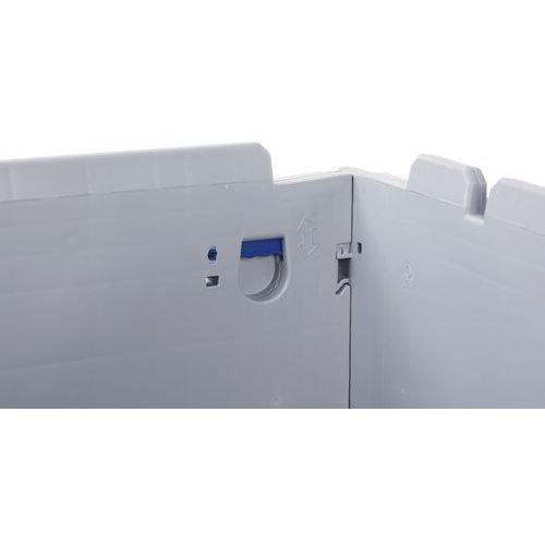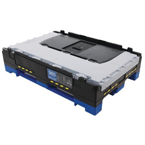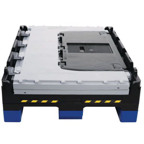 - Stilig og robust pallecontainer som kan foldes med en enkelt bevegelse av en enkelt person.