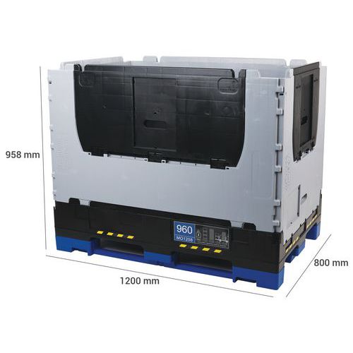 Pallecontainer Magnum sammenleggbar – Schoeller Allibert, Volum: 665 L, Totalhøyde: 958 mm