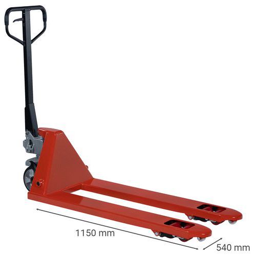 | Varenavn | Pallejekk – lengde 1150 mm – kapasitet 2500 kg, Kapasitet: 2500 kg, Gaffel, lengde: 1150 mm |