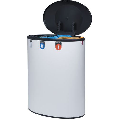 Papirkurv for kildesortering med lukket lokk, Volum: 60 L, Materiale: Plast, Skrog, farge: Hvit, Farge: Hvit