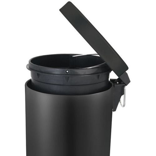 Rund pedalbøtte med innvendig plastbeholder.