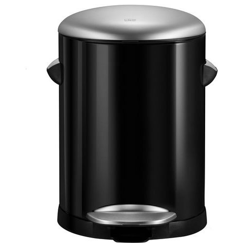 Vakkert designet pedalbøtte med slående håndtak og rundt lokk.